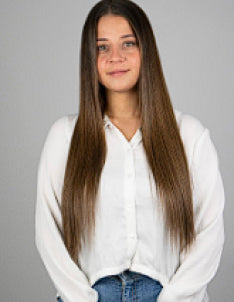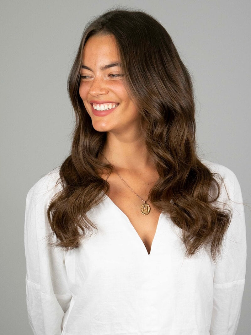 Premium-Echthaar mit unsichtbarer, angenehmer Befestigung und natürlichen Farbnuancen, die perfekt mit deinem Haar verschmelzen.