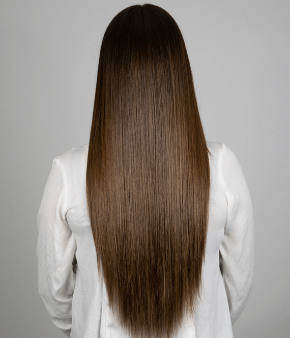 Damit ein natürlicher Übergang entsteht, empfehlen wir eine Mindestlänge von 10 cm. Bei kürzerem Haar könnten die Extensions sichtbar sein.
